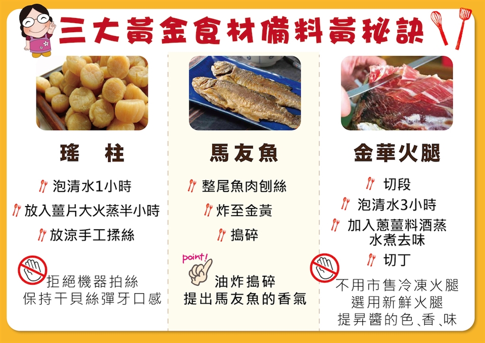 元贝丝、金华火腿搭配马有鱼 道地港式XO干贝丝酱br佛跳墙等级元贝酒蒸手工揉丝製成br融合山珍及海味 鲜甜好味极品XO酱